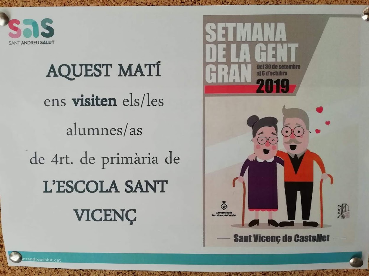 Els i les alumnes de 4t, el dimarts 1 d'octubre vam anar a la residència d'avis de Sant Vicenç. Allà ens van dividir en dos grups i vam conviure durant un matí compartint experiències: jugant al passa paraula, al volei, ... i també ens van ensenyar algunes de les seves habitacions. Va ser molt interessant!